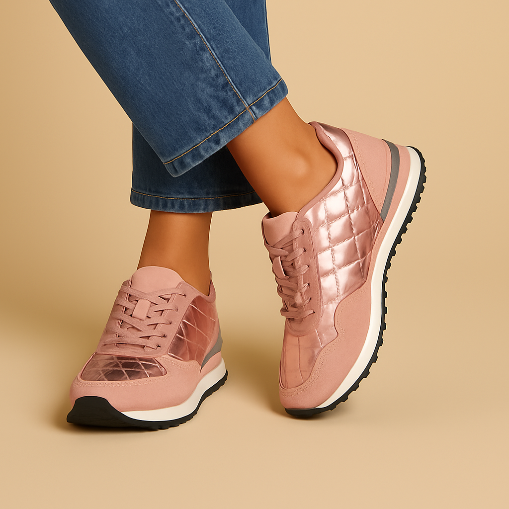 Conhece a Sapatilha Charme, a prova de que o estilo descontraído pode ser incrivelmente sofisticado. Com um tom rosado suave e a textura elegante de crocodilo, esta sapatilha é o teu novo acessório favorito para o dia a dia.